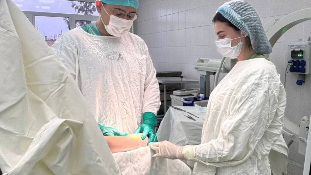 Хирурги выполнили забор композитного перфорантного малоберцового лоскута из голени пациента, который содержал участок малоберцовой кости, окружающие ткани и собственную артерию для его кровоснабжения. Затем на предплечье был установлен аппарат Илизарова, чтобы надежно зафиксировать и выправить ось конечности. Завершающим этапом стала пластика дефекта правого предплечья с использованием лоскута.