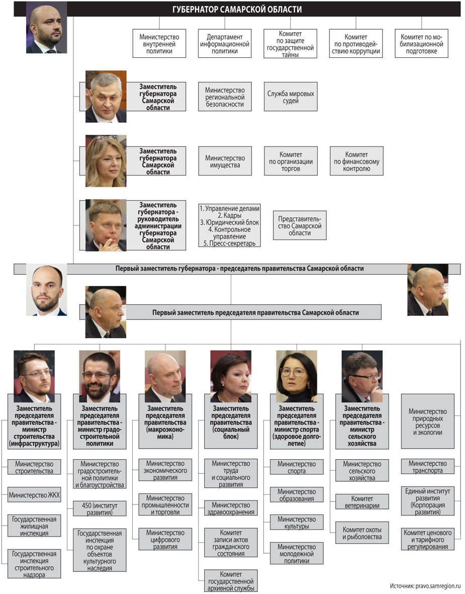 Что касается первого заместителя губернатора — председателя правительства Самарской области, то в соответствии с новой структурой у него будет семь заместителей, в том числе один первый.