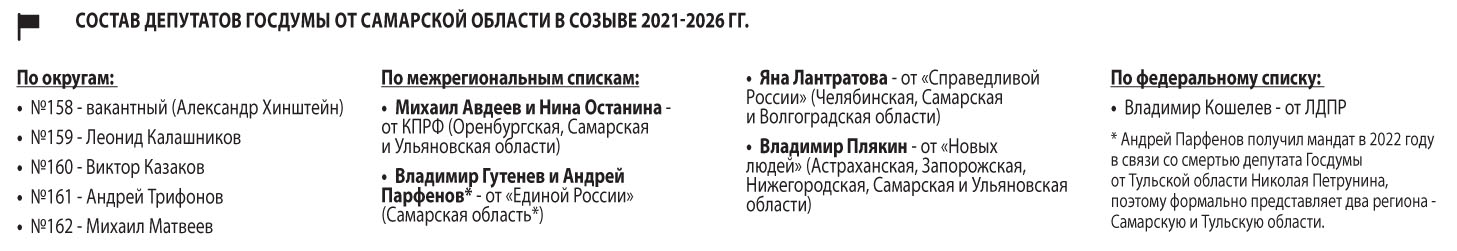 В нижней палате национального парламента Самарская область сейчас выглядит более чем демократично в сравнении с другими регионами. По одномандатным округам ее представляют по 2 депутата от «Единой России» и КПРФ. По спискам (включая межрегиональные) регион представляют по 2 депутата от «ЕР» и КПРФ, по 1 — от «Справедливой России» и «Новых людей», плюс Владимир Кошелев от ЛДПР, избранный по федеральному списку. То есть партия власти в Самарской области далека от тех 72%, которые сейчас имеет в Госдуме. И судя по имеющимся данным, шансы остаться разноцветной у Самарской области есть и в новом созыве Госдумы. Но не за счет Михаила Матвеева, если будет реализован обсуждаемый сейчас расклад.