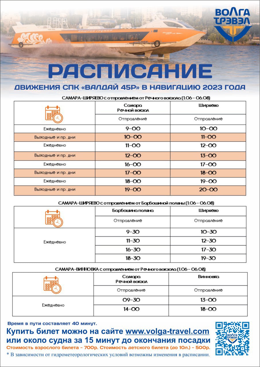 С начала лета меняется расписание скоростных судов «Валдай 45Р», курсирующих между Самарой, Ширяево и Винновкой.