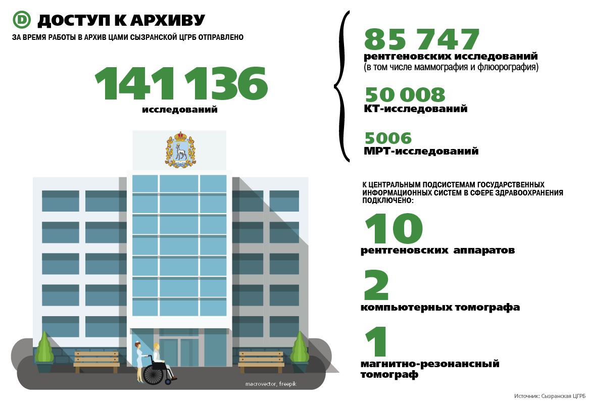 Все цифровые рентгеновские аппараты, а также аппараты КТ и МРТ Сызранской ЦГРБ подключены к Центральному архиву медицинских изображений региональной медицинской информационной системы.