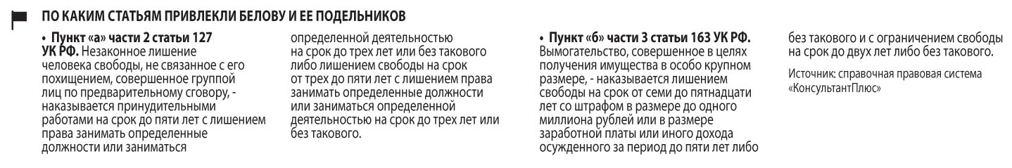 Несмотря на то, что такая версия событий также имеет право на существование, тех, кто пытался вернуть имущество Лады-Русь*, привлекли за использование неправовых способов разрешения конфликта. И эти методы подробно расписаны в материалах суда над Эльмирой Беловой.