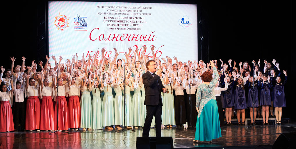 С 25 по 27 февраля в Сызрани прошел Всероссийский детский конкурс-фестиваль патриотической песни имени Аркадия Островского «Солнечный круг». Форум объединил полторы тысячи участников из 21 региона страны: от Мурманска до Сибири, включая Крым и Донецкую область. Всероссийский фестиваль имени выдающегося советского композитора-песенника, пианиста Аркадия Островского был приурочен к 175-летию Самарской губернии и Году единства народов России.