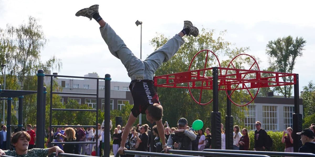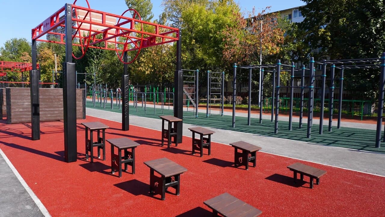 Современное спортивное пространство включает в себя беговую дорожку, полосы препятствий, площадки для стритбола и панна-футбола, а также зону воркаута. Особое внимание уделено безопасности и комфорту: территория оснащена системой освещения и видеонаблюдения, клумбами с цветами и зонами отдыха.