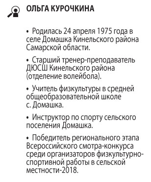— В деревне со спортом тяжело. Здесь все не так, как в городе, — и ритм жизни, и менталитет. В деревне у всех свое хозяйство, и скотине не скажешь — у меня сегодня выходной, поэтому я займусь спортом, а ты подожди. Плюс невысокие зарплаты не позволяют заниматься в платных группах. Вот, например, ко мне дети ходят только потому, что я тренер-преподаватель ДЮСШ. Но, несмотря ни на что, мы все равно собираемся, играем в волейбол, ходим в тренажерный зал. Кстати, наша мужская команда — 13-кратный чемпион области по волейболу и пятикратный участник Всероссийских сельских игр. И работают в деревне тренерами те, кто просто любит спорт и живет им. И нужно иметь настрой быть на ногах с раннего утра до позднего вечера.