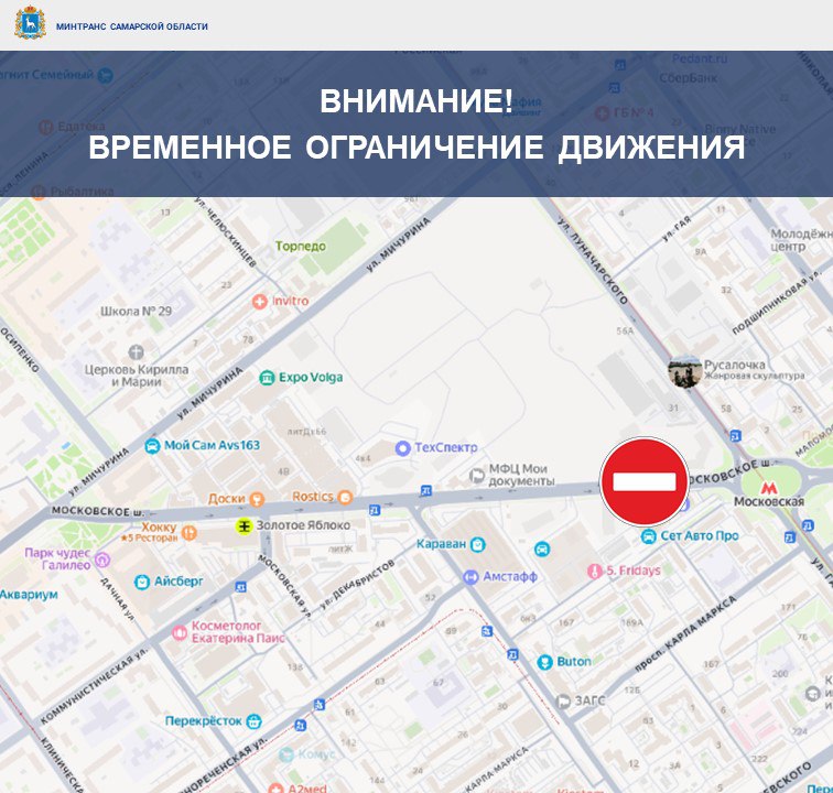 Об ограничении сообщает министерство транспорта и автомобильных дорог Самарской области, которое объясняет ограничение движения необходимостью прокладки теплосетей ресурсоснабжающей организацией.