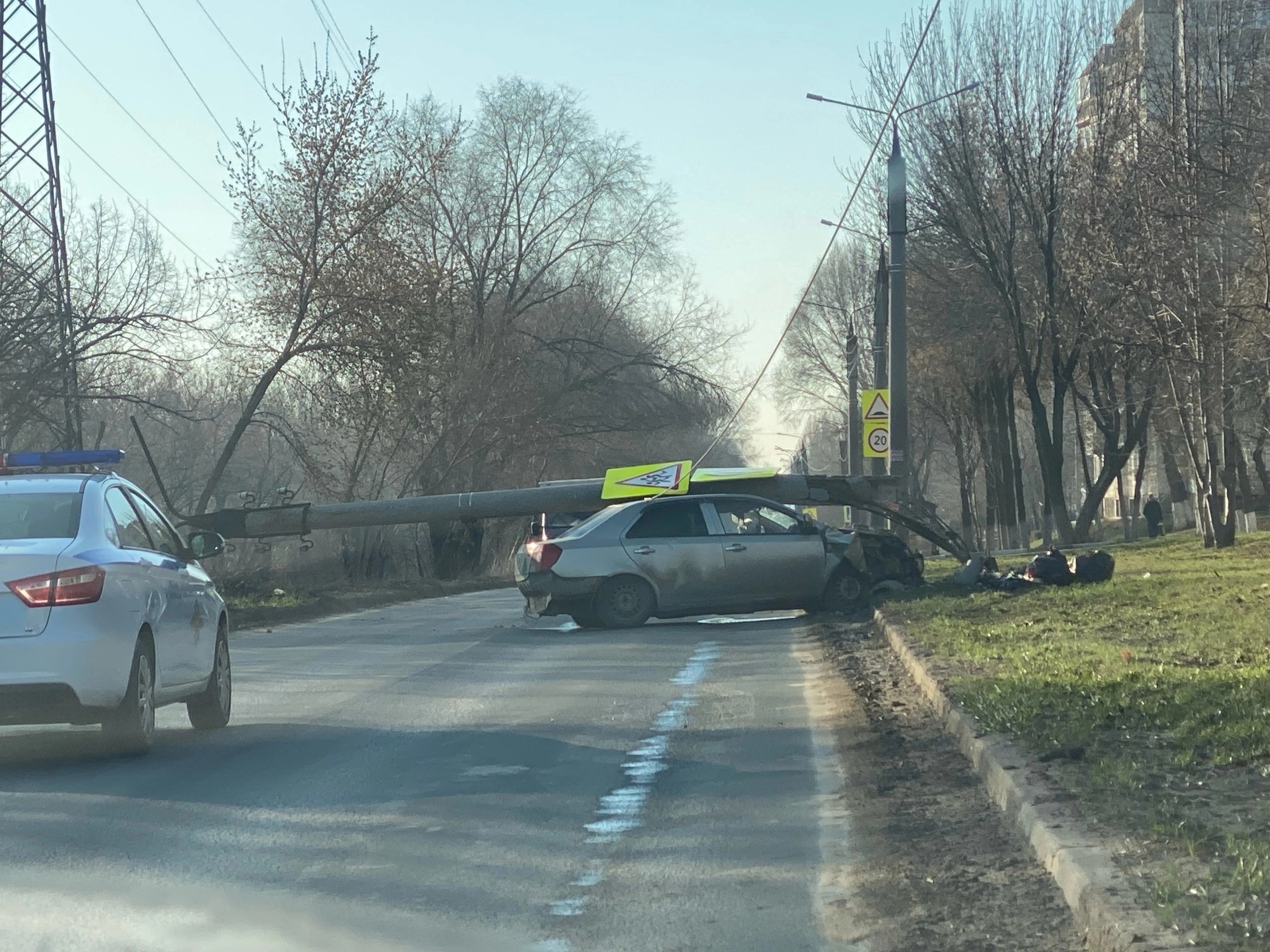 В субботу, 8 апреля, рано утром автомобиль Geely въехал в столб. Удар был такой силы, что световая опора переломилась и упала.