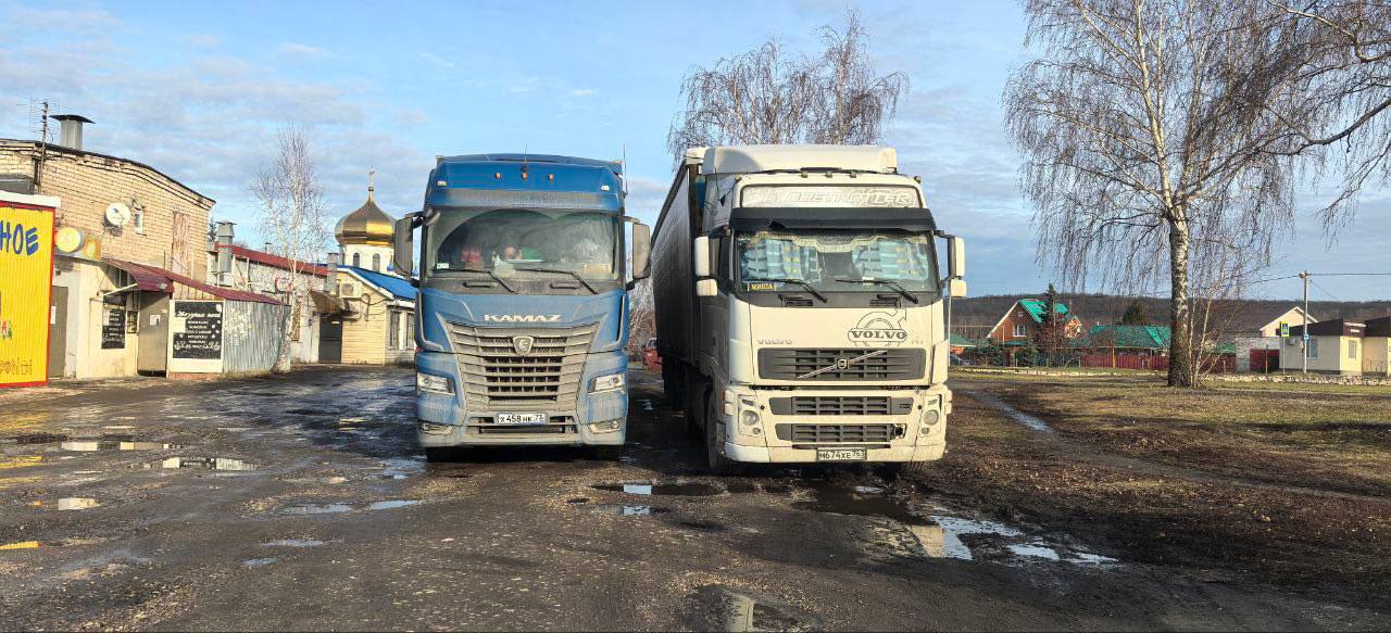 Огромные тяжелые грузовики занимают обе стороны дороги, нарушая ПДД и создавая аварийную обстановку.