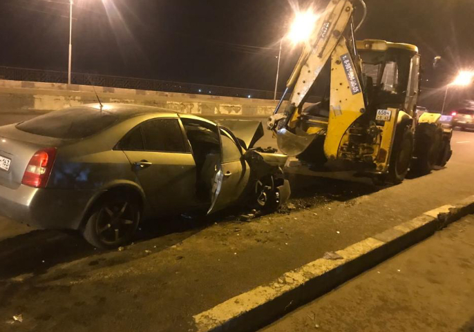 В результате «Nissan Primera» столкнулся с следовавшим перед ним в попутном направлении по крайней правой полосе движения трактором.