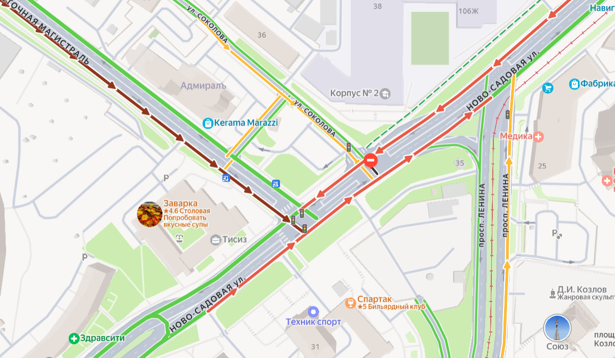 Как ранее сообщал OBOZ.INFO, с 19 января запрещен левый поворот с Ново-Садовой на Соколова к АЗС и зданию ГУ МВД. Одновременно была изменена работа светофоров. По мнению регионального минтранса, это должно было разгрузить одну из ключевых артерий города. Власти рекомендовали альтернативный маршрут через Северо-Восточную магистраль.