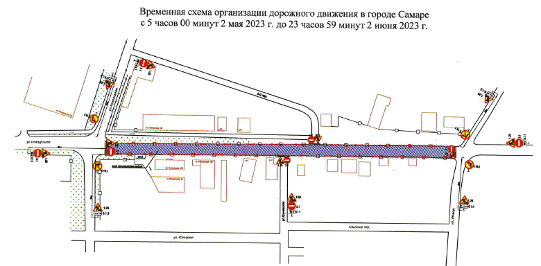 Участок между улицей Аксакова и проспектом Карла Маркса будет закрыт с 5:00 2 мая до 23:59 19 мая 2023 года. Самарские автомобилисты могут воспользоваться схемой объезда.