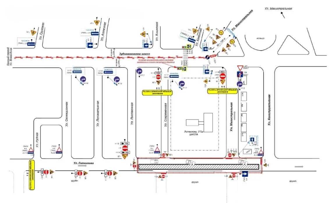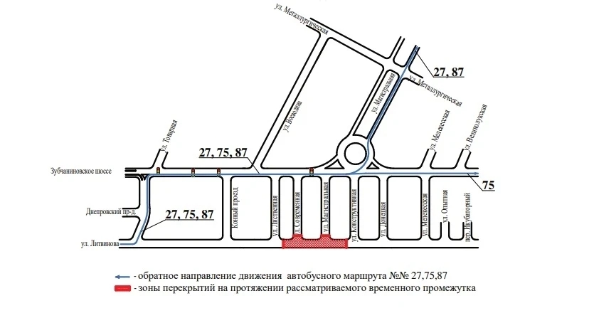 В качестве объезда предлагается маршрут через Зубчаниновское шоссе от Конного проезда до улицы Конструктивной с выездом на улицу Литвинова.