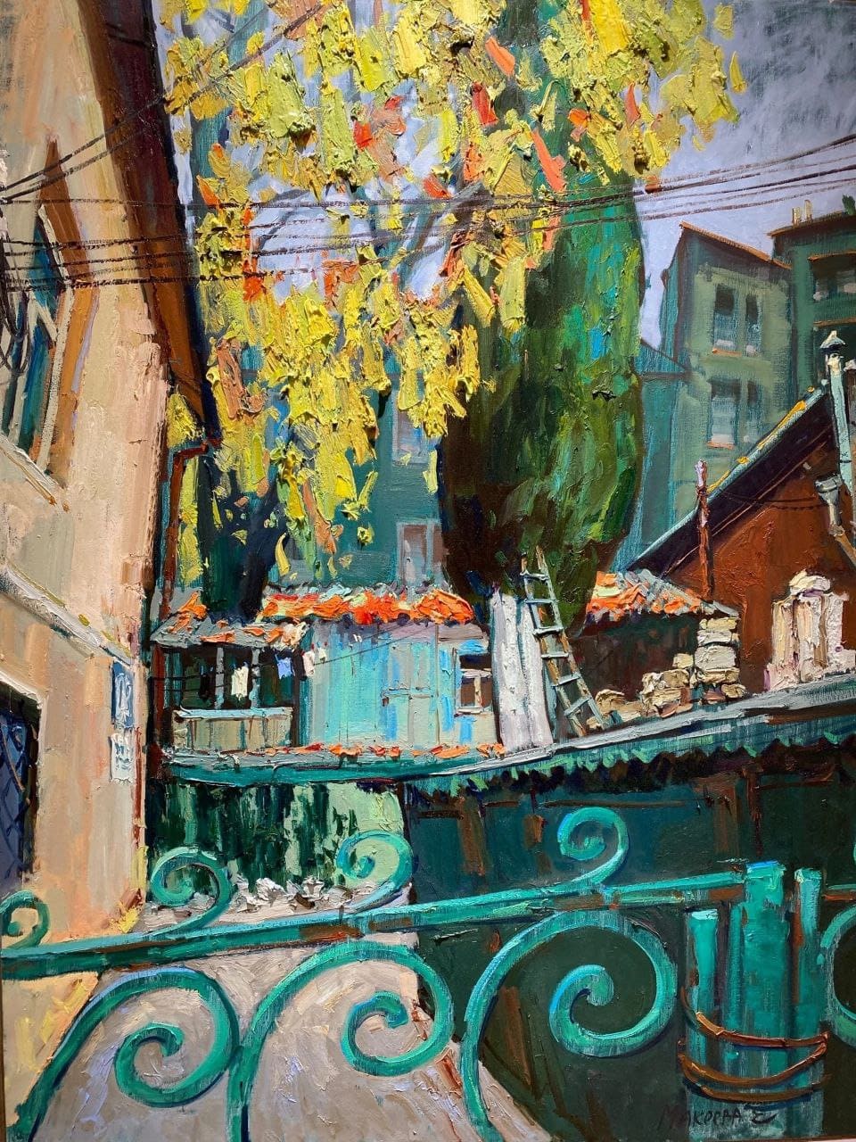 Её пейзажи пишутся размашистыми, крупными мазками, однако, это не мешает зрителю разглядеть детали пространства на полотне. Из под руки Елены вышли Крымские окрестности переложенные на холст, Ласточкино гнездо с четко прорисованными лодками и катерами.