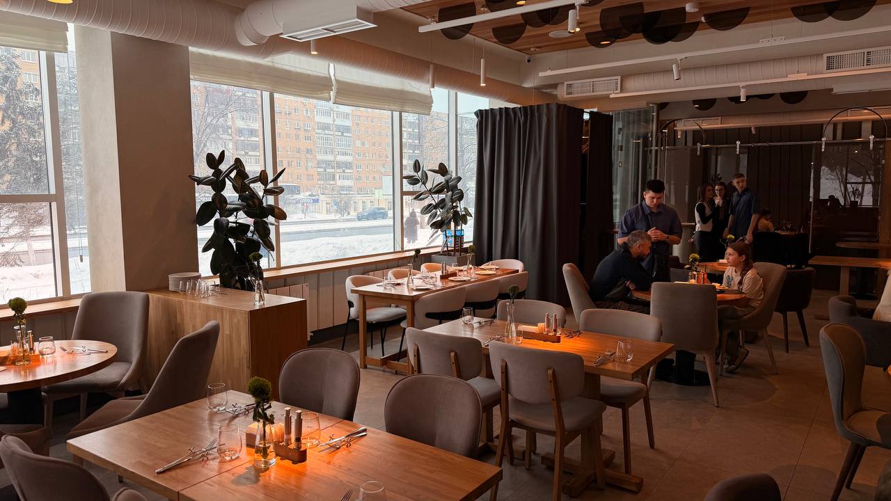 Дизайн ресторана теперь перекликается с оформлением заведения на Набережной. В интерьере – светлые тона, комфортное зонирование и полностью обновленная мебель. Морская айдентика используется дозированно, создавая атмосферу, но не перегружая пространство.
