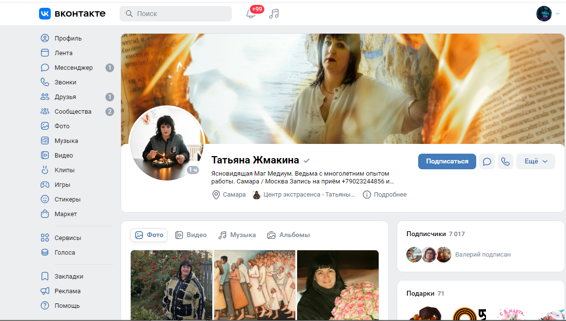 Необычную услугу продвигает в своих соцсетях и ТГ-канале самарчанка Татьяна Жмакина, называющая себя ясновидящей.