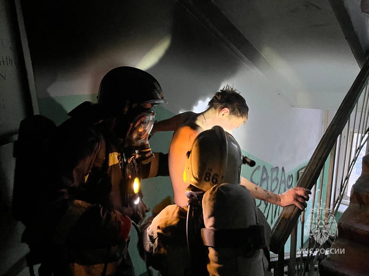 Оказавшихся в огненной ловушке женщину с двухлетним ребенком пожарным пришлось спускать с четвертого этажа задымленного здания при помощи автолестницы.