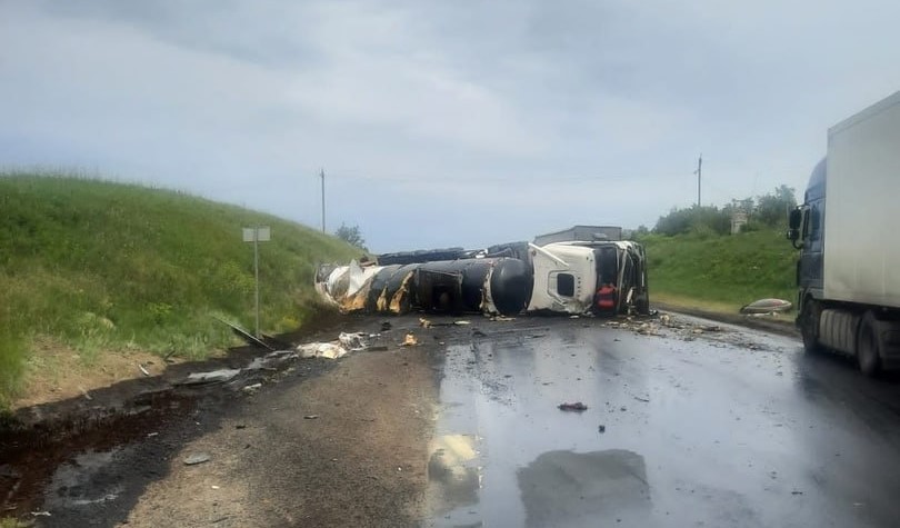 Кроме того, его силы хватило, чтобы опрокинуть цистерну. В результате весь груз вылился на землю. Сейчас идет ликвидация последствий разлива.