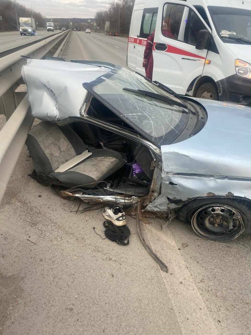 Как сообщают очевидцы происшествия, от удара автомобиль буквально разорвало на две части, одна из которых, продолжая движение, въехала в отбойник.