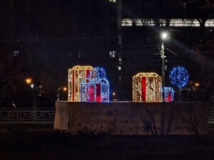 OBOZ.INFO рассказывал, что рабочие уже приступили к монтажу катка на площади Славы. Кроме того, во многих скверах уже появились праздничные инсталляции.