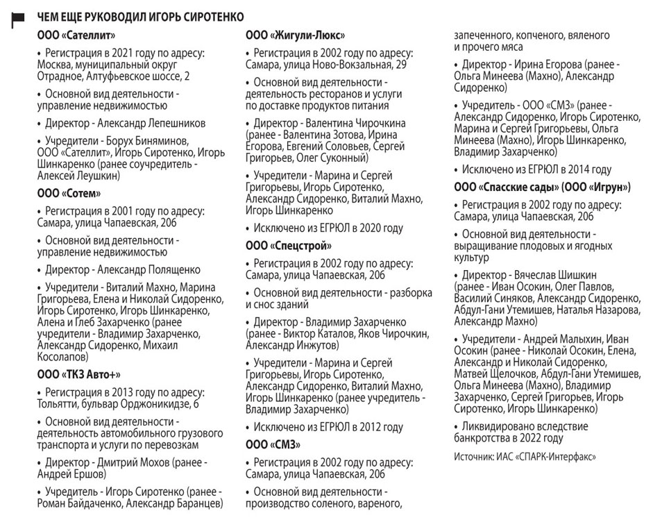 У Игоря Сиротенко также до сих есть статус ИП с регистрацией в селе Черноречье Оренбургской области.