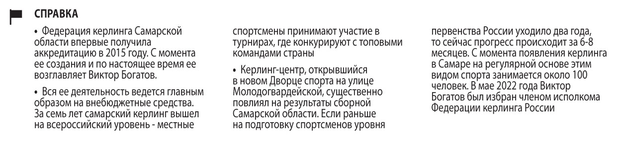 — Если он будет доступен — несомненно. Со стороны федерации мы намерены проводить различные мероприятия по популяризации нашего вида спорта. Несмотря ни на что. Вот смотрите, из-за дороговизны льда во дворце нам пришлось отменить запланированные городские соревнования. Но департамент физкультуры и спорта Самары решил, что в перспективе на площади Куйбышева будут залиты две дорожки для керлинга. Не на всю длину, как у нас по регламенту, а покороче. И со 2 по 10 января 2023 года все желающие смогут лично попробовать себя в качестве керлингиста на инвентаре от нашей федерации. И там же мы решили провести городские соревнования. Раз уж Дворец спорта не идет нам навстречу и выставляет смету по 6 тысяч рублей за час, то мы проведем городской турнир на открытой площадке.