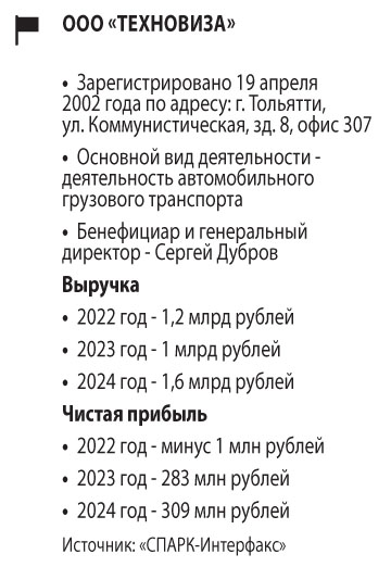 ООО «ТехноВиза» действует с 2002 года, специализируясь на перевозке товарных автомобилей. Владельцем и руководителем компании является Сергей Дубров. В структуру бизнес-группы входят также ООО «АгроВиза» и ООО «ДС Логистика»; совокупная выручка этих компаний в 2024 году превысила 3,2 млрд рублей.