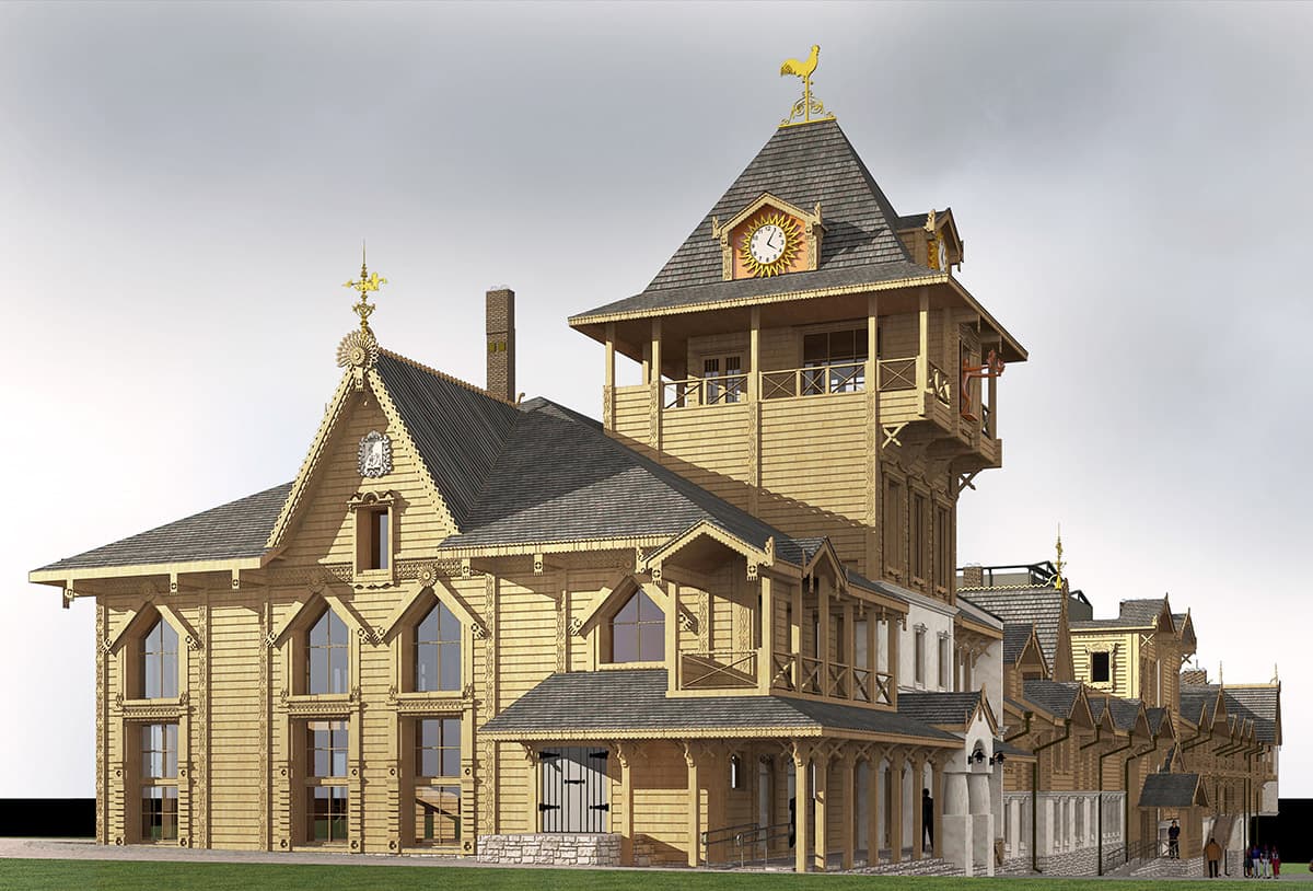 Подпись: Концепция спа-отеля «Дачные грезы» одновременно и стилистически копирует историческую архитектуру Самары, и работает на туристическую привлекательность локации