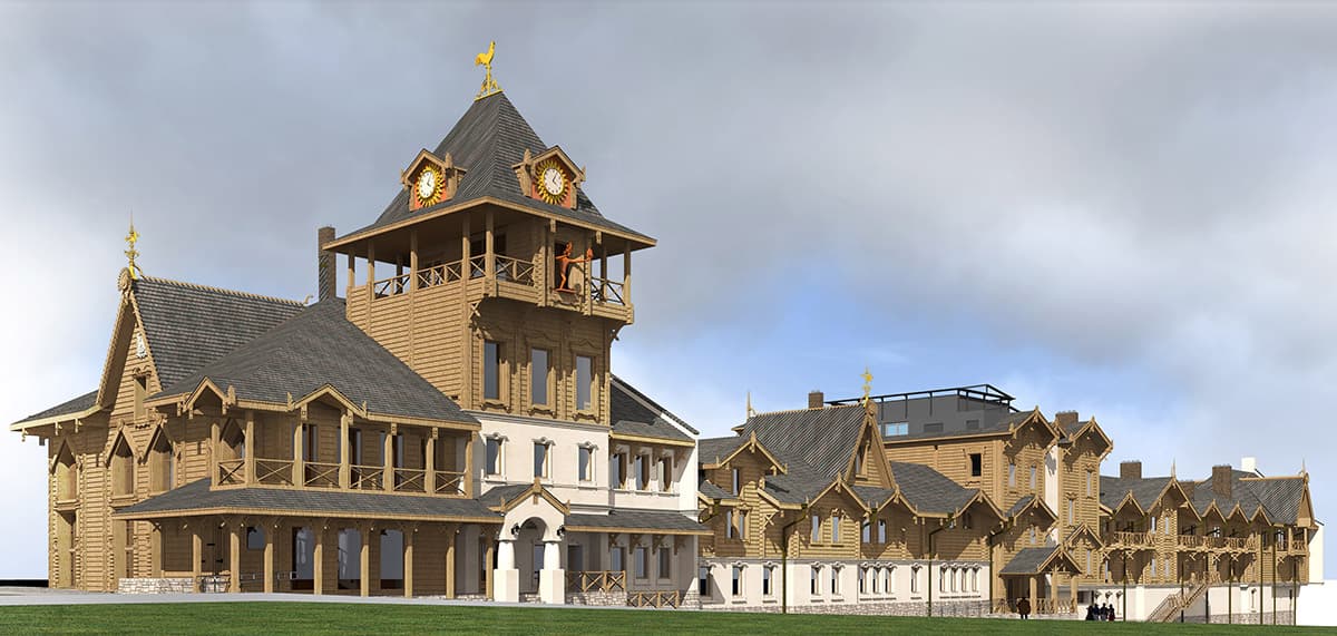 Подпись: Концепция спа-отеля «Дачные грезы» одновременно и стилистически копирует историческую архитектуру Самары, и работает на туристическую привлекательность локации