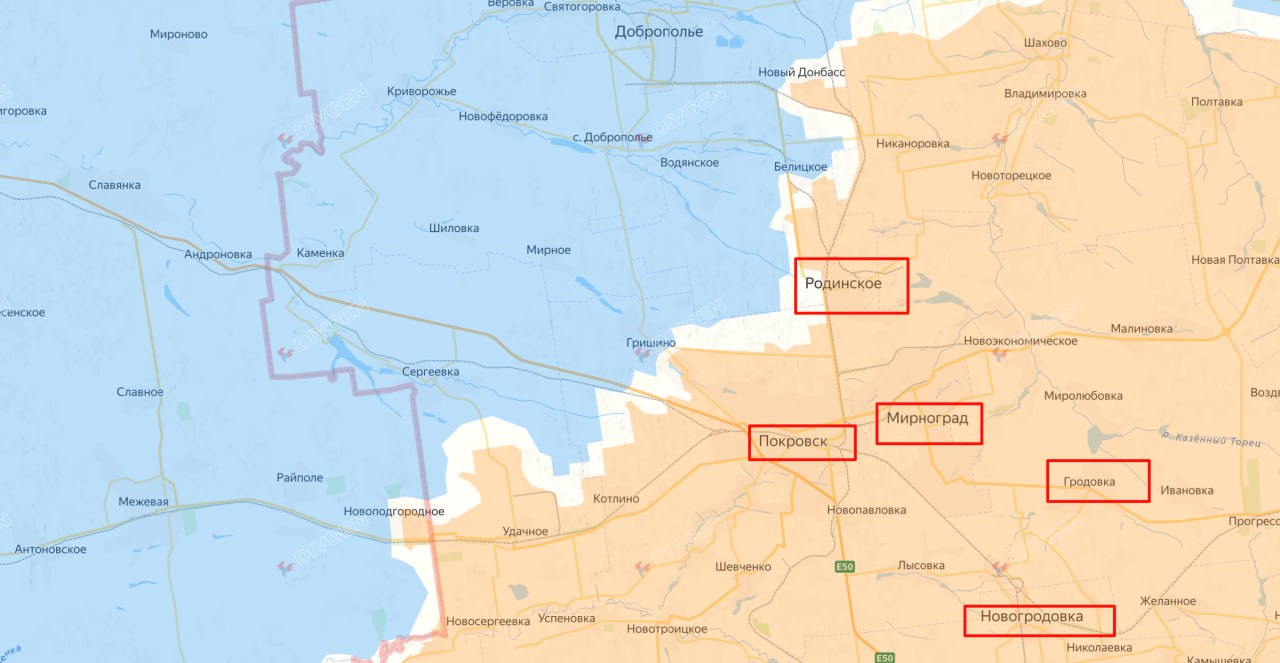 «Восстановлен контроль над Родинским, Покровская агломерация под полным управлением России», — сообщил Лебедев, уточнив, что под агломерацией он понимает не только Красноармейск и Димитров (украинское название Покровск и Мирноград), но и Новогродовку, Гродовку и само Родинское.