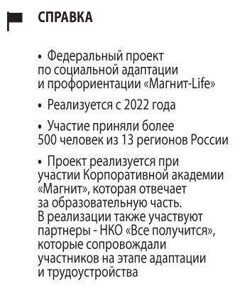 Торжественная церемония вручения дипломов собрала на одной площадке главных героев — ребят, которые прошли путь от собеседования до полноценной работы. Для каждого из них участие в проекте стало первым серьезным опытом трудовых отношений. Проект реализуется при участии Корпоративной академии «Магнит», которая отвечает за образовательную часть. В реализации также участвуют партнеры — НКО «Все получится», которые сопровождали участников на этапе адаптации и трудоустройства.