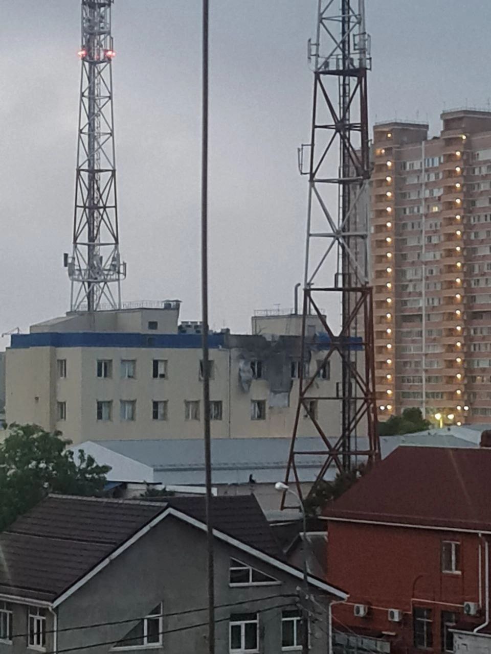 На этом фоне местные жители сообщали в социальных сетях об ударе беспилотника по зданию с вышкой связи одного из сотовых операторов. Опубликованы кадры момента взрыва.