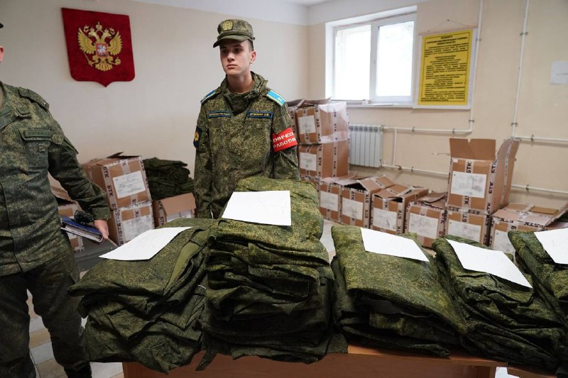 «Летний и зимний утепленный комплект, плащ-палатка, полотенце, мыло — все выдали сразу. Обмундирование все по размеру, все новое», — рассказал курсант Андрей Кузьмин, продемонстрировав всю амуницию.