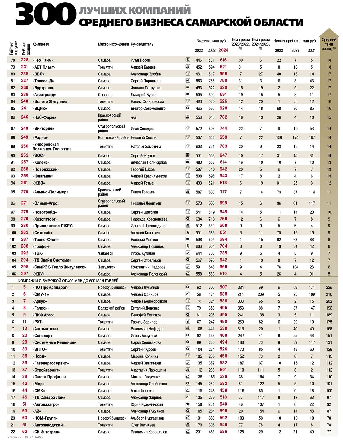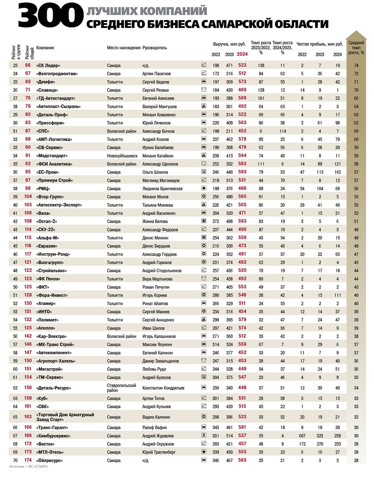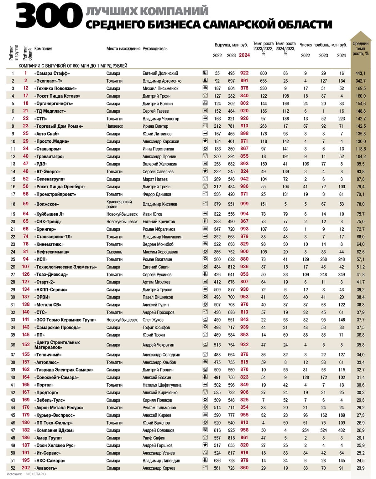 В целом в 2024 году 300 лучших компаний среднего бизнеса Самарской области продемонстрировали совокупные обороты, превышающие 403 млрд рублей, и заработали более 14,9 млрд рублей чистой прибыли.