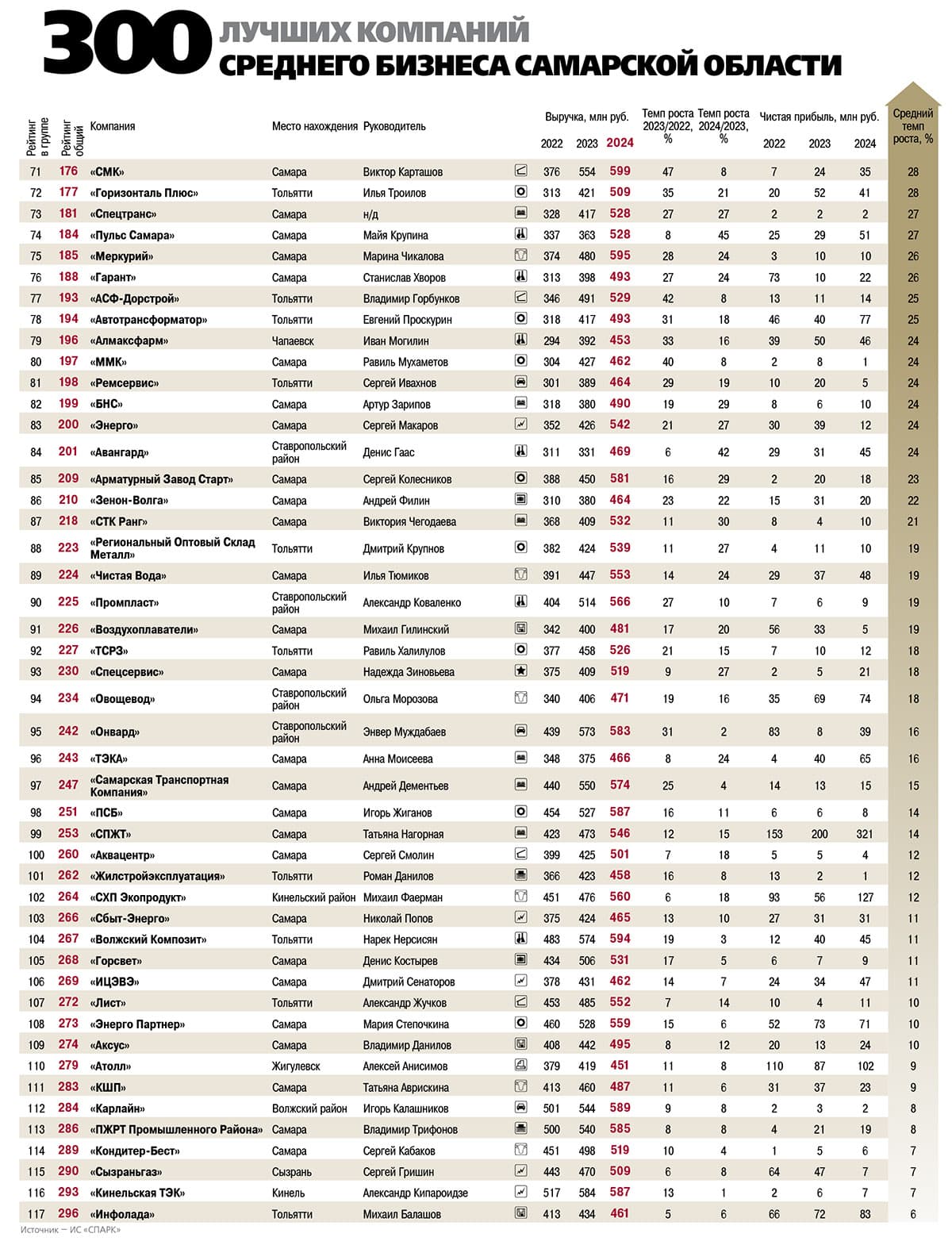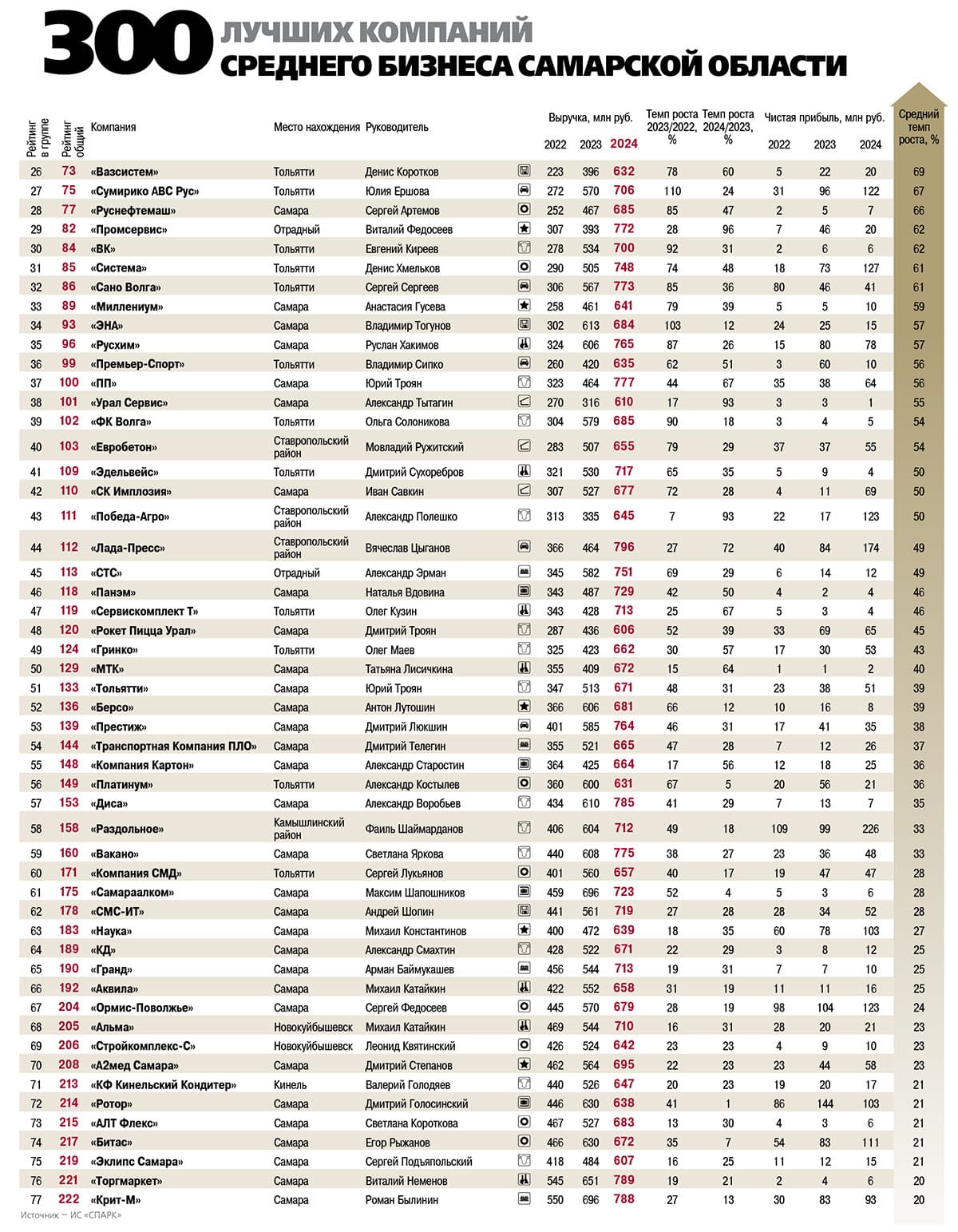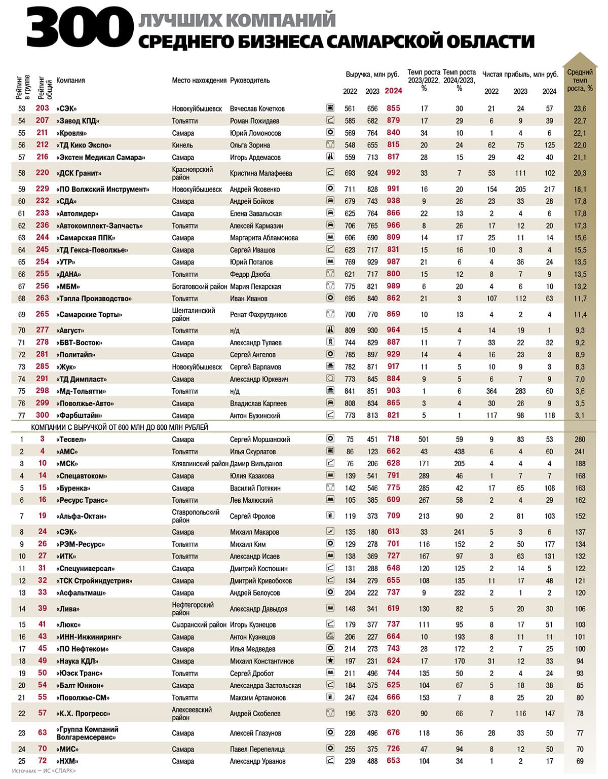 В целом в 2024 году 300 лучших компаний среднего бизнеса Самарской области продемонстрировали совокупные обороты, превышающие 403 млрд рублей, и заработали более 14,9 млрд рублей чистой прибыли.